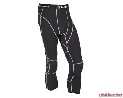 The 3/4 length tight is designed to comfortably fit next to the rider as a base layer. Using a slightly higher compression fabric than the Moto-Skiveez base shorts, the tight is intended to reduce muscle fatigue and improve riding stamina. The garment incorporates a waistband designed for ultimate comfort. Manufactured using two fabrics, this design maximizes breathability and moisture control. The knee section is patterned to facilitate bending and movement.