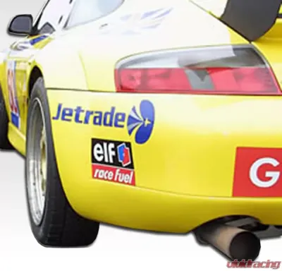 The 1999-2001 Porsche 996 Carrera C2 C4 Duraflex GT3-R Look Wide Body Rear Fender Flares - 2 Piece, also known as 105405, is an exceptional addition for any Porsche enthusiast looking to enhance their vehicle's aerodynamics and aesthetic appeal. Crafted from a unique blend of fiberglass and plastic, Duraflex products are known for their superior flexibility and durability, ensuring that your car not only looks great but can also withstand the rigors of the road.