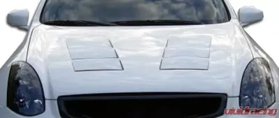 The 2003-2007 Infiniti G Coupe G35 Duraflex TS-1 Hood - 1 Piece (Part # 105883) is an exceptional aftermarket upgrade designed for automotive enthusiasts seeking a perfect blend of style and functionality. Crafted from high-quality fiberglass, this hood not only enhances the aesthetic appeal of your G35 but also contributes to improved aerodynamics and weight reduction, essential for any performance-driven vehicle. The Duraflex brand is renowned for its innovative designs and superior materials, making the 105883 a top choice for those looking to elevate their driving experience.