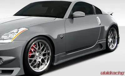 The 2003-2008 Nissan 350Z Z33 Duraflex J-Spec Side Skirts Rocker Panels - 2 Piece (107830) are designed to not only enhance the aesthetic appeal of your vehicle but also improve its aerodynamic performance. Crafted from a unique blend of fiberglass and plastic, Duraflex parts are known for their durability and flexibility, making them a favorite among automotive enthusiasts.