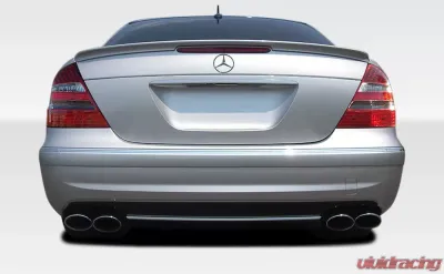 The 2003-2009 Mercedes E Class W211 4DR Duraflex E63 Look Rear Bumper Cover - 1 Piece, model number 107806, features precision engineering that guarantees a perfect fit. It comes pre-drilled for easy installation, and its flexible construction allows for minor adjustments, making it a hassle-free upgrade for any DIY enthusiast. The bumper cover is designed to match the original factory specifications, ensuring that you don't have to compromise on quality or aesthetics.