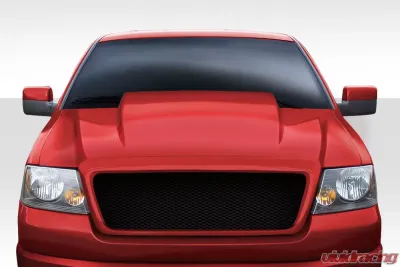 The 2004-2008 Ford F-150 Duraflex Cowl Hood - 1 Piece (model number 112573) is engineered to elevate your truck's performance and style. Crafted from a unique blend of fiberglass and plastic, this cowl hood offers a lightweight yet durable solution for truck enthusiasts looking to enhance their vehicle's aerodynamics. With its aggressive styling and functional design, the Duraflex cowl hood not only improves airflow to the engine but also gives your F-150 a striking appearance that sets it apart from the crowd.