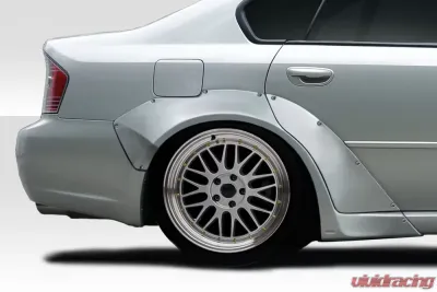 The 2005-2009 Subaru Legacy Duraflex MSR Wide Rear Fender Flares - 4 Piece (50mm wider) - 117127 is a game-changer for Subaru enthusiasts looking to enhance both the aesthetics and functionality of their vehicle. Crafted from high-quality fiberglass, these fender flares not only provide an aggressive look but also accommodate wider tires for improved traction and stability. The flares extend your vehicle's body by 50mm, offering a unique blend of style and performance that is hard to beat.