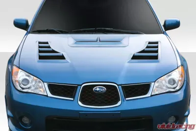 The 2006-2007 Subaru Impreza WRX STI Duraflex TS-1 Hood - 1 Piece (Part # 114022) is designed to enhance both the aesthetics and performance of your vehicle. This premium hood is crafted from high-quality fiberglass, ensuring a lightweight yet durable component that can withstand the rigors of high-speed driving. The Duraflex technology combines fiberglass with plastic, providing a flexible yet sturdy structure that resists cracking and damage.