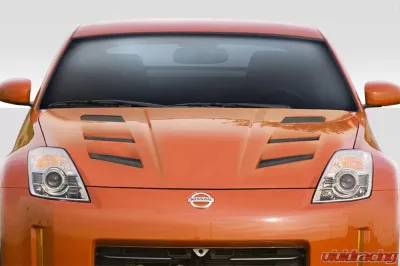In summary, if you're looking to elevate your Nissan 350Z's performance and style, the 2007-2008 Nissan 350Z Z33 Duraflex AM-S Hood - 1 Piece with part number 113355 is the perfect choice. Experience the blend of quality, design, and functionality that only Duraflex can provide.