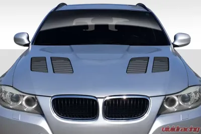 The 2009-2011 BMW 3 Series E90 Duraflex GTR Hood - 1 Piece, identified by part number 114431, is a striking enhancement for any E90 owner looking to elevate both the aesthetic and performance of their vehicle. Crafted from high-quality fiberglass, this hood not only adds a sporty flair but is also engineered for optimal weight reduction, contributing to improved handling and responsiveness.