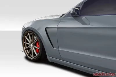 The 2010-2014 Ford Mustang Duraflex GT350 V2 Look Front Fenders - 2 Piece, identified by the part number 115036, is a game-changer for Mustang enthusiasts seeking to enhance both aesthetics and aerodynamics. Crafted from high-quality fiberglass, these fenders provide a lightweight yet durable solution for those looking to upgrade their vehicle's exterior.