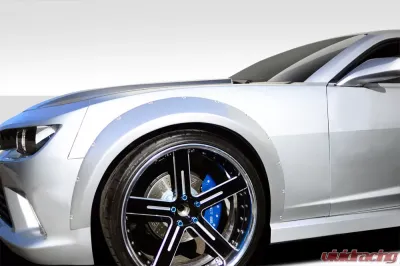 The 2010-2015 Chevrolet Camaro Duraflex Wide Body GT Concept Front Fender Flares - 2 Piece (109799) is a must-have for any Camaro enthusiast looking to elevate their vehicle's aesthetics and performance. Crafted from high-quality fiberglass, Duraflex fender flares are engineered to provide a perfect fit while enhancing the overall look of your ride. The unique design of the 109799 flares not only adds a wider stance to your Camaro but also allows for larger wheel and tire combinations, improving grip and handling on the road or track.