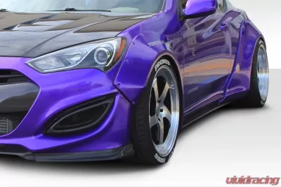 The 2010-2016 Hyundai Genesis Coupe 2DR Duraflex Circuit 75 MM Front Fender Flares - 2-piece (part number 112625) is engineered to enhance both the aesthetic appeal and functional performance of your vehicle. Crafted from a unique blend of fiberglass, plastic, and rubber, Duraflex provides a lightweight yet durable solution for car enthusiasts looking to elevate their ride's style and handling.