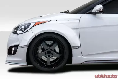 In conclusion, the 2012-2017 Hyundai Veloster Turbo Duraflex Envision Front Fender Flares - 4 piece set, known as 114305, is the perfect addition for any Veloster Turbo owner looking to make a statement on the road. With their combination of style, performance, and durability, these fender flares are a must-have for those who demand the best from their vehicles. Upgrade your ride today with Duraflex!