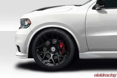 The 2014-2023 Dodge Durango Duraflex SRT Look Front Fender Flares - 2 Pieces (Part No. 118492) are engineered to elevate your vehicle's aesthetic and functional appeal. Crafted from high-quality fiberglass and featuring a unique design, these fender flares not only provide a muscular look but also enhance the Durango's off-road capabilities. The Duraflex brand is synonymous with durability and style, making it a top choice for automotive enthusiasts.