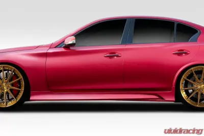 The 2014-2023 Infiniti Q50 Duraflex Impulse Side Skirts - 2 Piece (part number 113537) are engineered to enhance both the performance and aesthetic appeal of your vehicle. Crafted from a unique blend of fiberglass and plastic, Duraflex products offer a lightweight yet durable solution for car enthusiasts looking to make a statement. These side skirts not only improve the aerodynamic profile of your Q50 but also provide a sleek, aggressive look that sets your car apart from the rest. With the 113537 side skirts, you'll experience improved downforce, stability, and an overall enhancement in handling characteristics, making them a must-have for any serious driver.