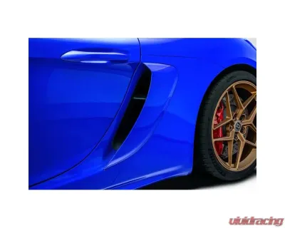 The 2014-2023 Porsche Cayman 718 Duraflex Rear Fender Vents - 2 Piece (part number 117789) is a must-have for any Cayman enthusiast looking to boost both aesthetics and performance. Crafted from high-quality Duraflex material, these rear fender vents not only improve airflow but also add a striking visual appeal to your vehicle. The unique design allows for optimal cooling of the rear brakes, ensuring your Porsche maintains peak performance during spirited drives or track days.