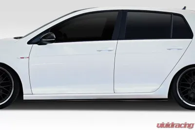 Elevate your 2015-2021 Volkswagen Golf or GTI with the Duraflex 116995 RZ Side Skirt Splitters. Designed to enhance the aerodynamic performance and visual appeal of your vehicle, these splitters are crafted from a unique blend of fiberglass and plastic, offering both durability and flexibility. The innovative design not only improves airflow but also adds a sporty edge to your car's profile, making it stand out on the road.