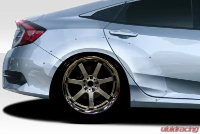 The Duraflex 117590 is the ultimate upgrade for your 2016-2021 Honda Civic 4DR. Designed to enhance both aesthetics and performance, these rear fenders provide a widebody look that not only turns heads but also improves aerodynamics. Crafted from a unique blend of fiberglass and plastic, Duraflex components are known for their superior flexibility and durability, making them an ideal choice for automotive enthusiasts who demand quality.