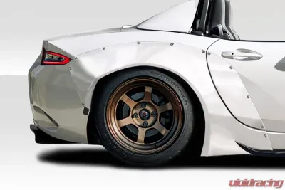 In conclusion, the 2016-2023 Mazda Miata Duraflex TKO RBS Rear Fender Flares - 4 Piece (115716) are the ultimate upgrade for those looking to enhance both the performance and appearance of their vehicle. With a commitment to quality and design, Duraflex continues to be a leader in the aftermarket automotive industry, providing parts that not only look good but perform exceptionally well.