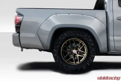 The 2016-2023 Toyota Tacoma Duraflex Circuit Rear Fender Flares - 2 Piece (116521) are the perfect addition for Tacoma owners looking to elevate both style and functionality. Crafted from high-quality fiberglass, these fender flares are designed to withstand the rigors of off-road adventures while providing a sleek, aggressive look that turns heads on the street. The Duraflex material combines durability with flexibility, ensuring that your fender flares will not only look great but also perform exceptionally well under various driving conditions.
