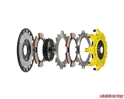Advanced Clutch Mod-Twin 225 XT Rigid Race T2R-MZ02 Mod-Twin 225 XT Rigid Race Kit tackles aggressive launches and rapid shifting of high powered AWD???s by combining twice the ceramic friction surfaces with a no-nonsense solid Mono-Drive hub in a completely modular design. Each diaphragm spring endures an exclusive four-stage heat treating process providing a consistent light pedal feel. Puck-style Friction Plates with high quality ceramic friction materials deliver high friction coefficient, superior heat capacity, and long clutch life. These Friction Plates uniformly transfer torque to a Mono-Drive chrome-moly hub which is heat treated for strength and durability extending input shaft life with one continuous spline. The lightweight, rigid design allows for quicker shifts and trouble-free service. This kit includes a CNC-machined and dynamically balanced flywheel, pressure plate cover, diaphragm spring, face, puck-style ceramic friction plates, rigid Mono-Drive hub, floater, patented Monoloc Collar, release bearing, alignment tool and pilot bearing (if needed). Mod-Twin clutches are fully rebuildable and most components can be ordered separately.