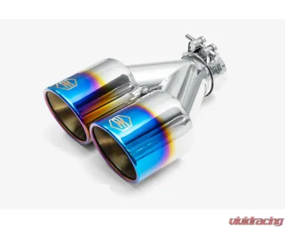Revitalize your vehicle's appearance with these stunning dual outlet blue flame exhaust tips, a striking addition that adds a touch of vibrant personality to your ride. With its captivating burnt-end finish, these tips instantly draw attention, elevating your vehicle's visual appeal. Specifically designed to exit the vehicle on either side with its non-staggered design.