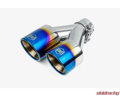 Revitalize your vehicle's appearance with these stunning dual outlet blue flame exhaust tips, a striking addition that adds a touch of vibrant personality to your ride. With its captivating burnt-end finish, these tips instantly draw attention, elevating your vehicle's visual appeal. Specifically designed to exit on the passenger-side with its sleek, staggered design.