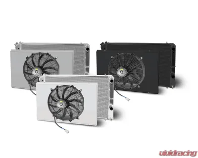 AFCO Aluminum Black Radiator & Shroud Single Black Shroud LSX Double Pass Crossflow w/ Transcooler Chevrolet Camaro w/ LSX 1970-1981