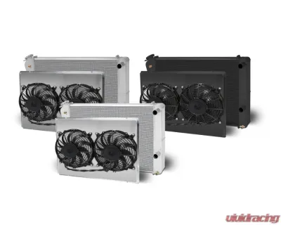 AFCO Aluminum Satin Radiator & Shroud Dual Black Shroud Double Pass w/ Transcooler Pontiac Lemans 1978-1981 | Chevrolet Monte Carlo w/ LSX 1978-1987