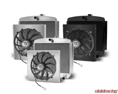 AFCO Aluminum Satin Radiator & Shroud Single Black Shroud Chevrolet 1949-1954