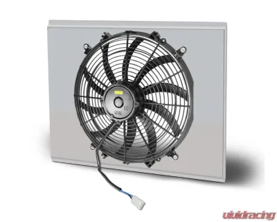 AFCO fan & brushed satin finish aluminum shroud assembly made to fit the 80287 series Chevrolet Nova 1962-1967 aluminum AFCO radiator. Mounting hardware is included. The fans pull 2200 total CFM.