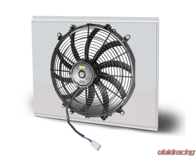 AFCO fan & brushed satin finish aluminum shroud assembly made to fit the 80288 series Chevrolet Nova 1968-1974 aluminum AFCO radiator. Mounting hardware is included. The fans pull 2200 total CFM.