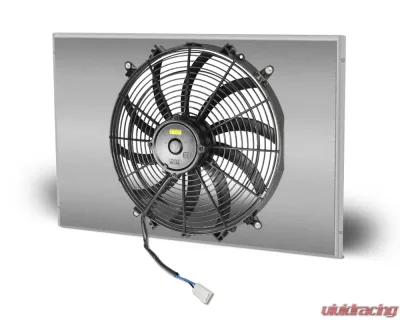 AFCO single fan & brushed satin finished aluminum shroud assembly made to fit the 84252 series Chevrolet Chevelle 1966-1967 AFCO LSX conversion radiator. Mounting hardware is included. The fans pull 2200 total CFM.