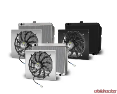 AFCO Down Flow Aluminum Radiator 22.25" x 22" Driver's Side Inlet Single Fan & Shroud Kit Satin w/o Cooler Mopar A, B & E Body