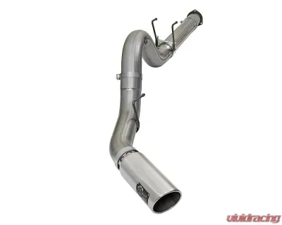 Now, let’s talk about the finishing touch: that massive 6" polished stainless steel slash cut tip. Not only does it look sharp, but those intercooling vents help keep the exhaust temps down too. And just to add a bit of flair, there’s a laser-cut black powder-coated aFe Power logo plate riveted on for that aggressive style that’ll turn heads.