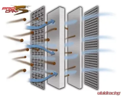 • Filtration Media: The Pro DRY S media consists of a 3-layer progressive synthetic design, allowing for maximum airflow while maintaining excellent filtration efficiency, even when the filter is dirty.