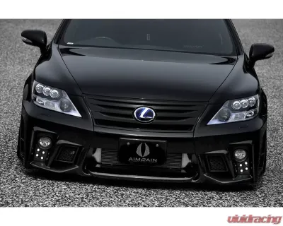 The AimGain VIP GT Front Bumper FRP is part of a stunning range of Aero Kits that accentuate and improve upon the original body lines of the Lexus LS600h and LS600hL. This refined styling embodies the essence of modern Japanese design, blending elegance with performance, making it a true statement piece for automotive enthusiasts.