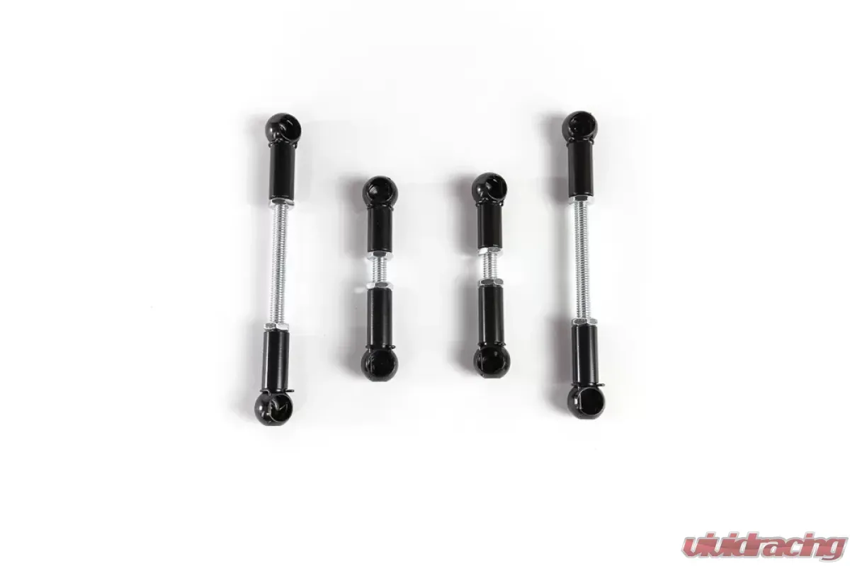 - One side is reverse threaded so that adjustment can be performed on the vehicle without removal of the link.