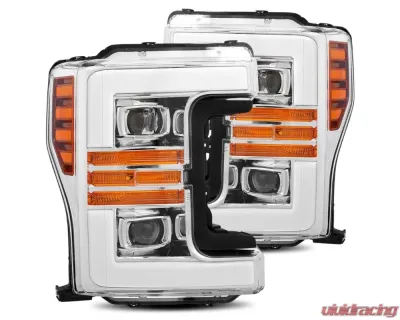 Introducing the AlphaRex USA PRO-Series Halogen Projector Headlights (Part Number: 8801071) — a masterclass in automotive lighting engineering, meticulously crafted for the discerning owner of the 4th generation Ford Super Duty. Designed to harmonize with the robust aesthetics of the Ford F-250, F-350, F-450, and F-550 (2017-2019), these headlights epitomize the fusion of form and function, delivering unparalleled illumination and visual sophistication.
