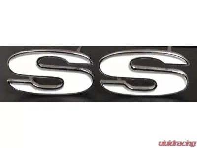SS, per fender side. Chrome diecast with correct shade white enamel inserts. Officially Licensed GM Restoration Parts.