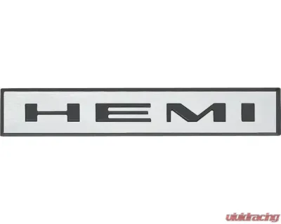 OER®reproduction of the HEMI deck lid emblem for 1967-69 Plymouth Belvedere models. Manufactured in the correct black lettering with a chrome finish.