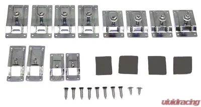 Complete lower Rallysport body molding installation kit. Unlike others that offer generic 'one size fits all' clips, ours Includes everything correct to install all six moldings: each specific clip style, plated special headed end molding screws, nylon insulating washers, hadrware and body pads.
