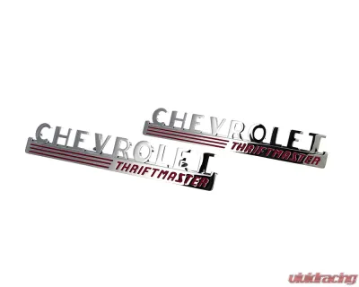 These premium aftermarket emblems are designed to add a touch of classic style and distinction to your vintage vehicle. Made from high-quality materials and featuring the iconic "CHEVROLET Thriftmaster" design, these emblems ensure lasting durability and enhance the overall appearance of your truck or suburban.Our Hood Side Emblems Pair is designed to replace worn or damaged emblems on your 1947-1948 Chevy Pickup Truck or Suburban, adding a touch of classic style and distinction. The "CHEVROLET Thriftmaster" emblems are crafted from high-quality materials, providing reliable performance and lasting durability.Upgrade your 1947-1948 Chevy Pickup Truck or Suburban with this top-quality Hood Side Emblems Pair. Designed for optimal performance and lasting durability, these emblems are an excellent investment for your vehicle. Order your premium replacement today and enjoy the enhanced style and distinction of the iconic "CHEVROLET Thriftmaster" design!