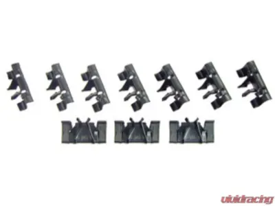 Set of 10 special spring steel clips hold convertible rear pinchweld molding tight to body, especially when the convertible top boot is attached.