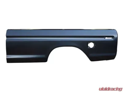 Reproduction outer bedside panel with single gas hole for the 73-79 Ford F100 Styleside Long Bed, 73-79 Ford F150 Styleside Long Bed & 73-79 Ford F250 Styleside Long bed model trucks. This is the outer panel only. This does not include the inner structure.