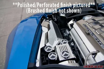 Transform the look of your Corvette with our premium 3-Piece Stainless Steel Brushed Finish Fender Covers. These meticulously crafted trim pieces are specifically designed to fit all 2014-2019 Corvettes, enhancing the inner fender area with a sleek and modern touch. The polished version pairs perfectly with our Polished/Perforated Alternator Cover (Model: 053049) for a cohesive look.