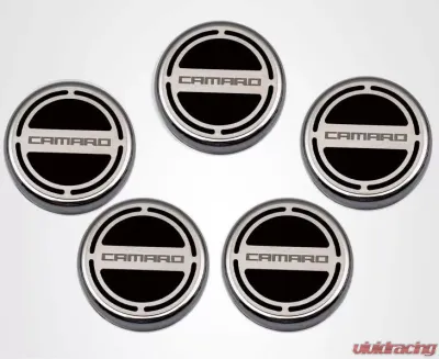Transform your engine bay into a stylish showcase with the ACC-103072-SBLK 5-Piece Engine Fluid Cap Cover Set. This officially licensed GM accessory is designed specifically for Chevrolet Camaro V8 models from 2010 to 2022, offering a perfect blend of aesthetics and functionality.