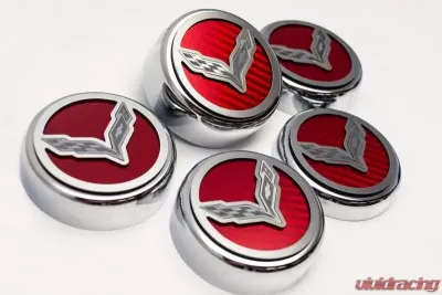 Upgrade your engine bay with these eye-catching fluid cap covers and showcase your Corvette's unique style!