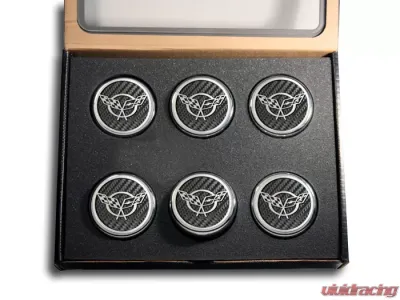 Transform the look of your Chevrolet Corvette C5's engine bay with the Genuine GM Licensed Corvette Crossed Flags 6-Piece Engine Fluid Cap Covers. These eye-catching chrome caps are designed to provide a sleek and stylish enhancement to your vehicle, featuring a brushed stainless steel laser-cut C5 Crossed Flags emblem that truly stands out. Choose your preferred vinyl color inlay to match your personal style.