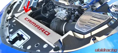 Give your Gen 6 Camaro a stylish upgrade with the GM Officially Licensed CAMARO Front Header Plate. Crafted from high-quality brushed stainless steel, this trim piece features a polished finish on the CAMARO plate section, making it a standout addition to your engine bay. Choose from a variety of vinyl carbon fiber color inlays for the CAMARO lettering, complemented by real carbon fiber overlay on the upper portion for a truly unique look.