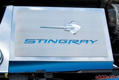 Transform the look of your Corvette Stingray engine bay with the stunning ACC-053030-BLK Stainless Steel Fuse Box Cover. This GM licensed accessory features striking "Corvette" lettering that showcases your pride in your vehicle. With its polished base and brushed face, this fuse box cover is designed to fit seamlessly over the existing fuse box, adding a sleek and stylish touch to your engine bay.