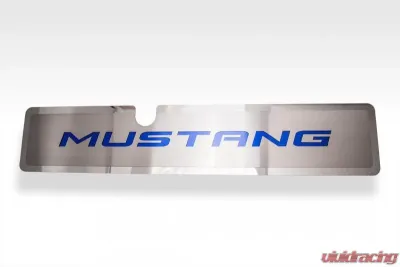 Give your 2015-2017 Mustang a striking new look with the ACC-273072-BLU Radiator Cover Vanity Plate featuring bold "Mustang" lettering. This accessory is designed to enhance your engine bay's aesthetic while showcasing your love for this iconic vehicle.