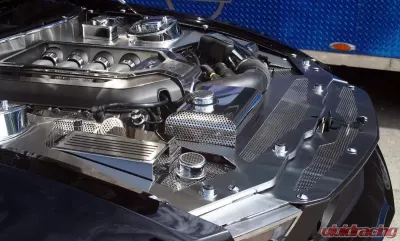 Revamp your Mustang's engine bay with our stunning brushed stainless steel perforated Radiator Cover. This accessory is designed to fit perfectly over your stock radiator, giving your engine bay a custom look that turns heads and impresses at every show.